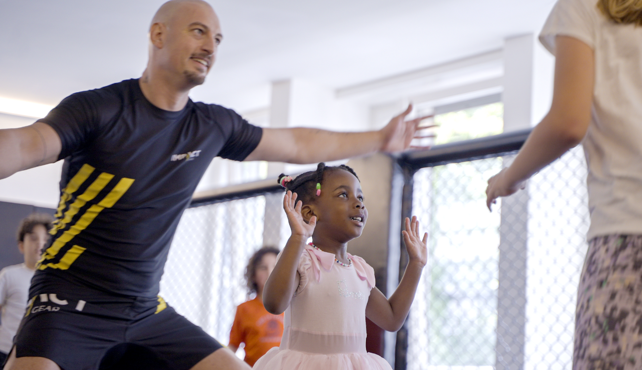 Spassiges, strukturiertes Kampfsporttraining, das Selbstvertrauen, Koordination und wichtige Lebenskompetenzen fuer Kinder im Alter von 6–14 Jahren aufbaut.